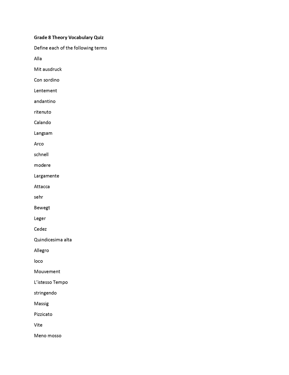 Theory 8: Vocabulary QuizCAD$0+CAD$0+https://schema.org/InStockcadKaren Rowell MusicKaren Rowell Music Name a fair price:CAD$Add to cart1 PDF theory practice sheetGrade Level8Size26 KBLength1 pageAdd to wishlist New wishlistShareShare on XShare on Facebook Copy linkCopy product URL